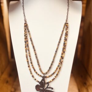 Open-back solar quartz pendant set in antique brushed silver. The chain is 24 inches with a magnetic clasp. This focal pendant has yellow, green, blue, purple, pink, and veins of red. The Chain length can be customized to exactly what works for you.